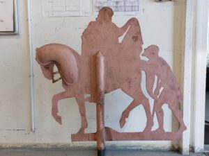 Hij is zichtbaar op de windwijzer van de Utrechtse Domtoren, in het